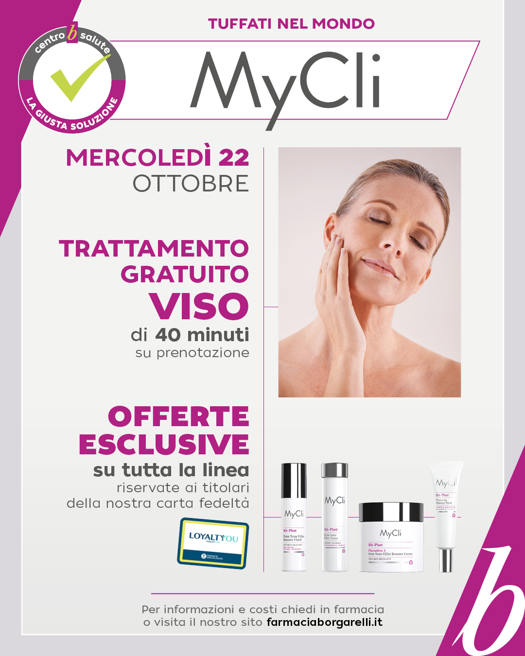 Prenota il tuo trattamento gratuito viso di 40 minuti! Inoltre, offerte esclusive su tutta la linea MyCli riservate ai titolari fidelity card!